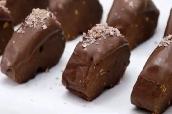 برای درست کردن این شیرینی خوشمزه ابتدا بیسکوئیتها را در همان بسته بندی خودش با گوشت کوب ضربه بزنید وخرد کنید سپس در کاسهای بریزید و همه مواد را اضافه کرده حسابی مخلوط و ورز دهید تا خمیری یکدست حاصل شود. در مرحله بعد خمیر شکلاتی را روی میز کار به صورت لولهای و استوانهای شکل دهید و یک و نیم سانتی برش دهید و تا نیمه در شکلات ذوب شده فرو کنید.