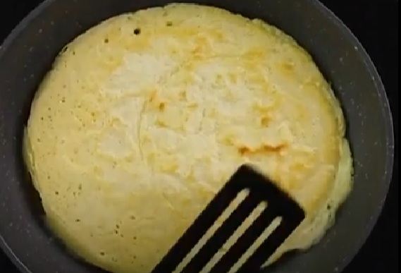 در آخر مقداری از مواد را با ملاقه بردارید و درون ماهیتابه نچسب و چرب شده و داغ بریزید و با پشت ملاقه به صورت دَوَرانی پخش کنید، بعد از این که یک طرف نان با حرارت متوسط کمی پخت برگردانید. پشت و رو کردنِ نان را چند بار انجام دهید تا نان پروتئینی شما پخته و آماده شود.