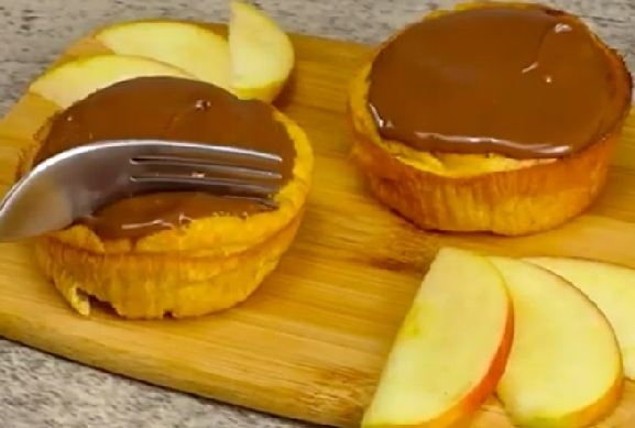 کیک سیب شما به همین راحتی آماده شده، با شکلات صبحانه تزئین و سرو کنید.